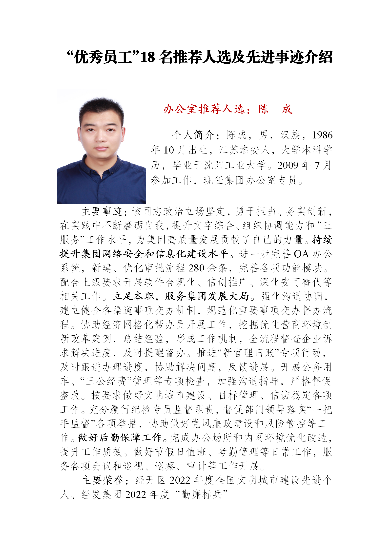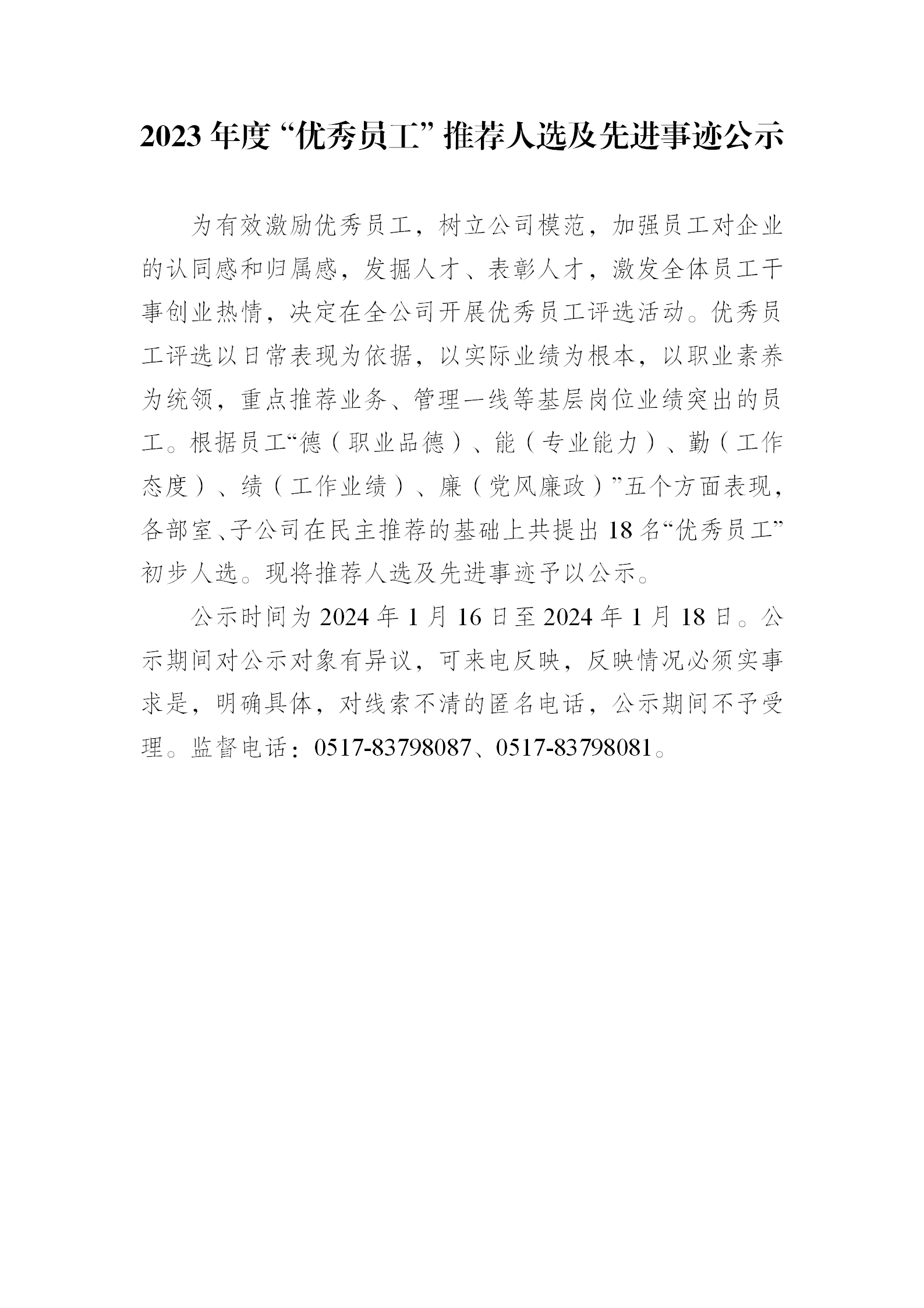 2023年(nián)度“優秀員工”推薦人選及先進事迹公示
