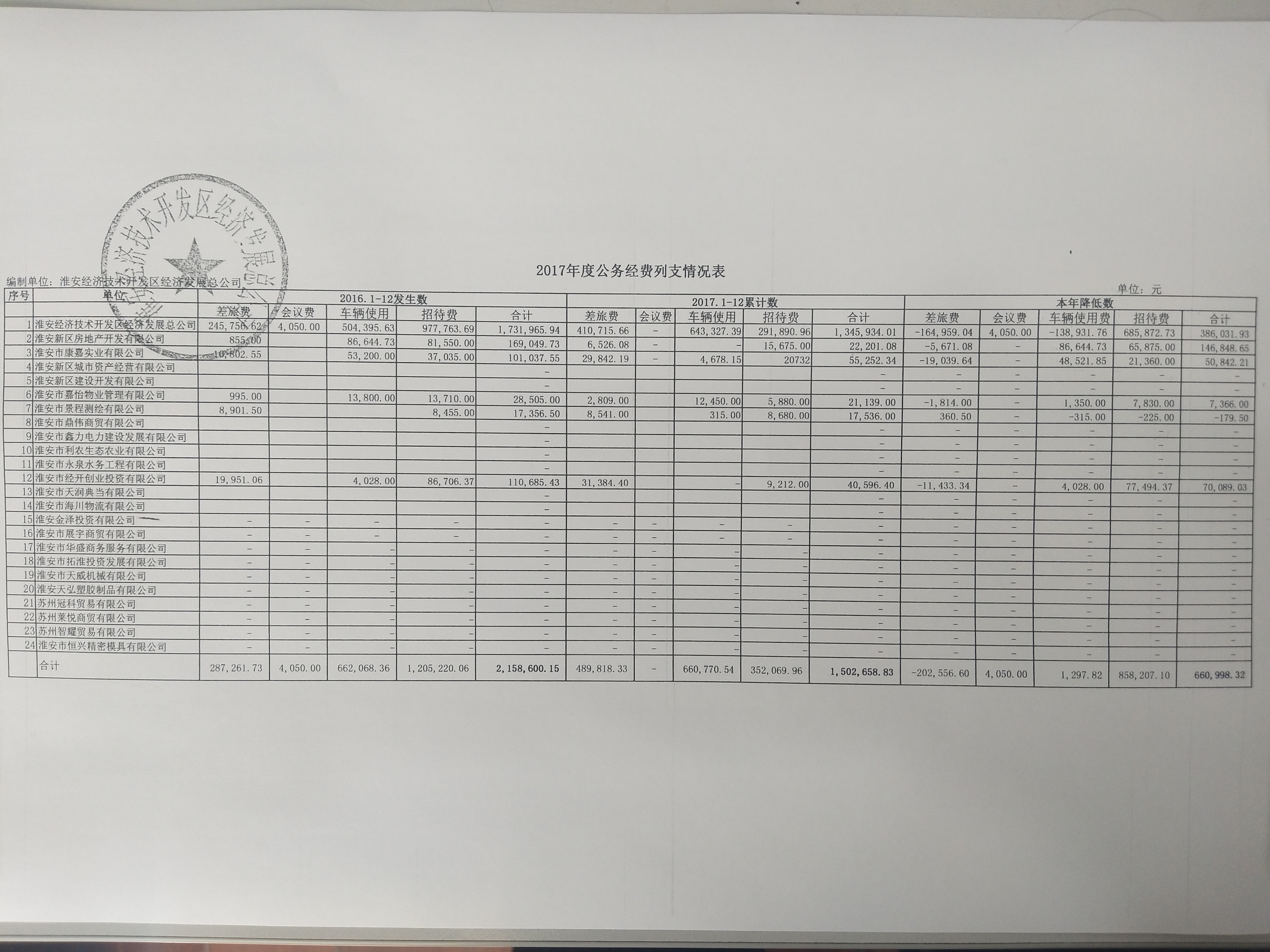 1-12月公務經費列支情況