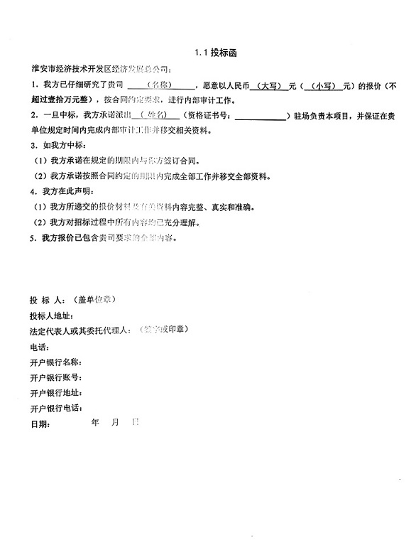 (二)報價文件遞交地(dì)點:淮安市經濟技術開發區富譽路5号,經濟發展總公司810室财務審計部。