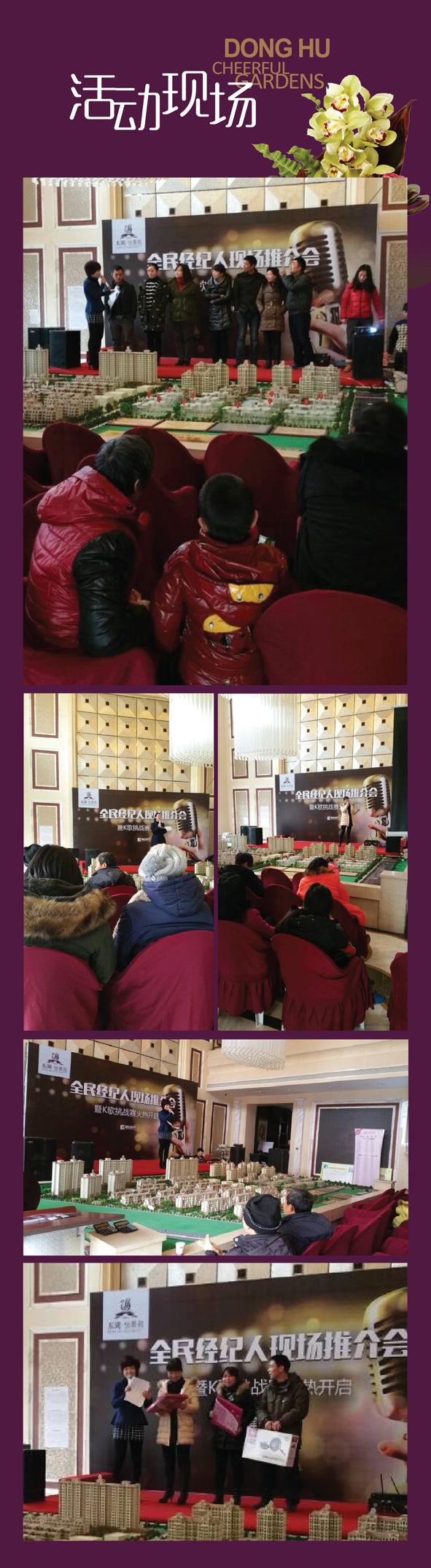 1月31日,東湖怡景苑全民經紀人現場推介會暨“我是歌手”K歌大賽如(rú)期舉行,老業主、新客戶以及全民經紀人濟濟一(yī)堂,渡過了一(yī)個難忘愉快的(de)午後。